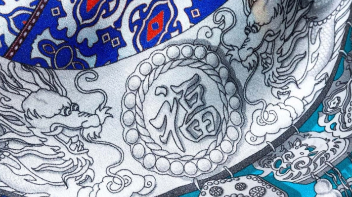 Hoạ tiết rồng trên khăn lụa của Shen Yun Collections.