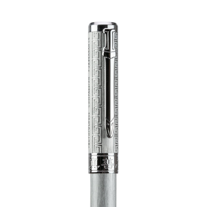 Bộ sưu tập bút bi tinh xảo này tôn vinh các giá trị 真 (zhēn) Chân, 善 (shàn) Thiện và 忍 (rĕn) Nhẫn, những giá trị vẫn thường được truyền tải trong các tiết mục của Đoàn Nghệ thuật Biểu diễn Shen Yun. Đưa ba nguyên lý đầy ý nghĩa này vào đời thực qua thiết kế duyên dáng, những chiếc bút với tông màu vàng và bạc đặc trưng trong bộ sưu tập này được tô điểm một cách trang nhã với các nút thắt tinh tế của Trung Hoa. Mong rằng mỗi ngày của bạn là những cuộc phiêu lưu và toả sáng với những điều diệu kỳ đến từ Thiên thượng.