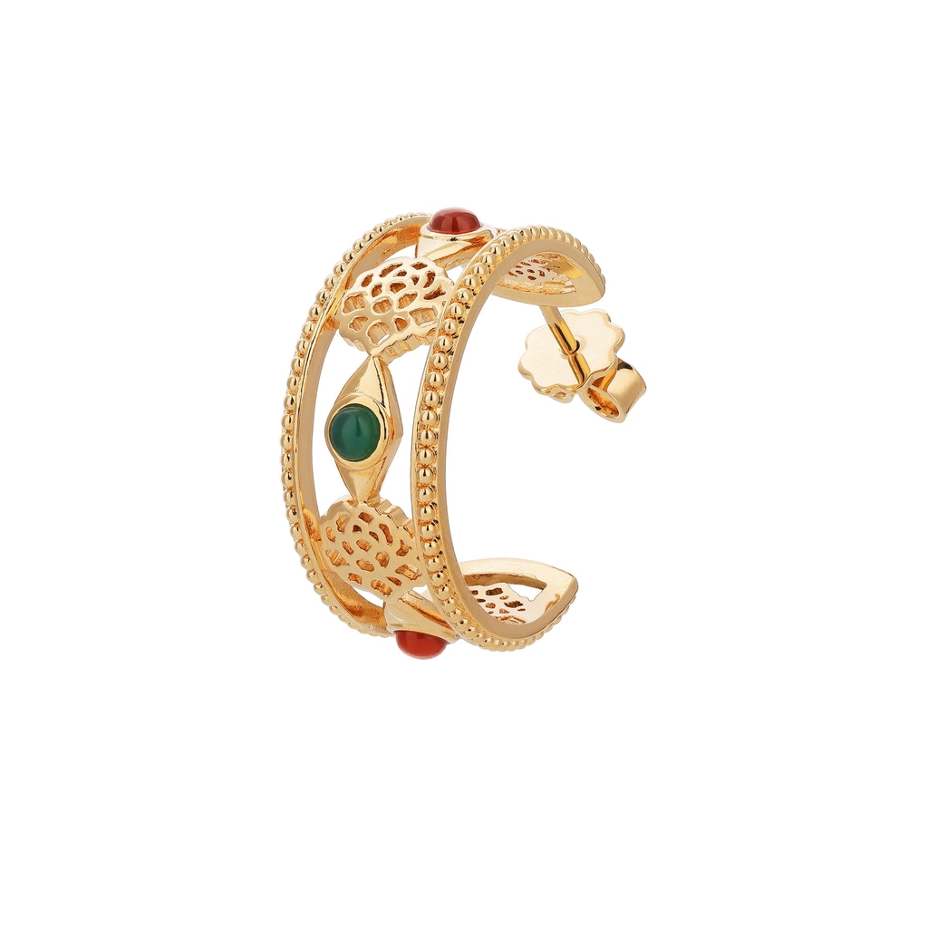Sự tráng lệ của triều đại hoàng kim trong lịch sử Trung Hoa được thể hiện tuyệt mỹ trong Bộ sưu tập Hoa Mẫu Đơn Nhà Đường Hoàng Kim hoàn toàn mới! Những viên đá quý Carnelian sắc cam và mã não xanh tỏa sáng trên nền vàng rực rỡ, tái hiện một cách hoàn mỹ sự thanh bình và thịnh vượng của triều đại nhà Đường.