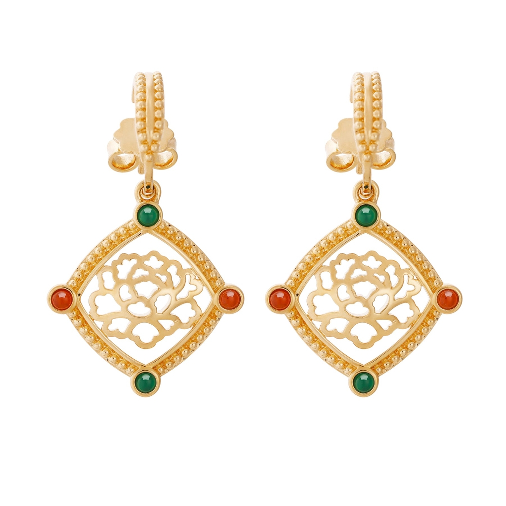 Mỗi chiếc bông tai còn mang biểu tượng nổi tiếng về vẻ đẹp “Quốc sắc thiên hương” dưới thời nhà Đường chính là hoa mẫu đơn. “Nữ hoàng của các loài hoa” trong ánh vàng kim kiêu sa sẽ làm rạng ngời phong cách và sự quý phái của bạn bất kể nơi đâu.