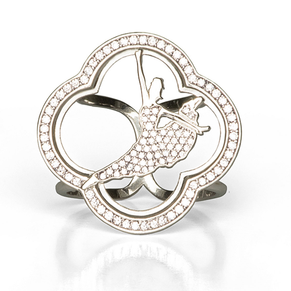 Thiết kế được lấy trực tiếp từ logo của Đoàn Nghệ thuật Biểu diễn Shen Yun, chiếc nhẫn khăn này khắc hoạ hình ảnh nữ vũ công trong tư thế "Đại Xạ Yến", một trong những bước nhảy kinh điển trong những vở diễn của Shen Yun. Thông qua việc dàn dựng các điệu múa cổ điển Trung Hoa cùng những tác phẩm nguyên bản của Dàn nhạc Giao hưởng, Shen Yun đã chạm đến trái tim của khán giả đồng thời làm sống lại sự huy hoàng đã bị đánh mất của một nền văn minh tráng lệ.