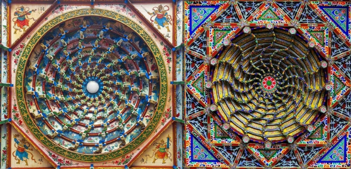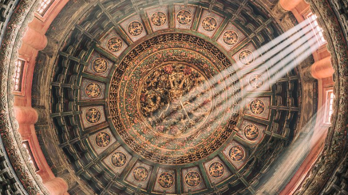 Một điểm đặc biệt trong nhiều Tảo tỉnh của cung điện xưa là sự xuất hiện của Bảo Tướng Hoa ngay trung tâm mái vòm. Đây là họa tiết mang ý nghĩa phú quý, cát tường, với bố cục tỏa tròn và những lớp cánh hoa xếp nối tiếp nhau không dứt. Hình thức này tượng trưng cho sự sống trường tồn, phúc lộc tuần hoàn, và mỗi lớp cánh mở rộng còn gửi gắm ý niệm về sự sinh trưởng không ngừng cùng dòng chảy may mắn lan tỏa khắp nơi. Khi kết hợp trong Tảo tỉnh, Bảo Tướng Hoa không chỉ làm tăng giá trị thẩm mỹ mà còn biến phần mái vòm ấy thành một điểm hội tụ của năng lượng cát tường, như thể bầu trời đang ban xuống phúc lành cho toàn bộ không gian.