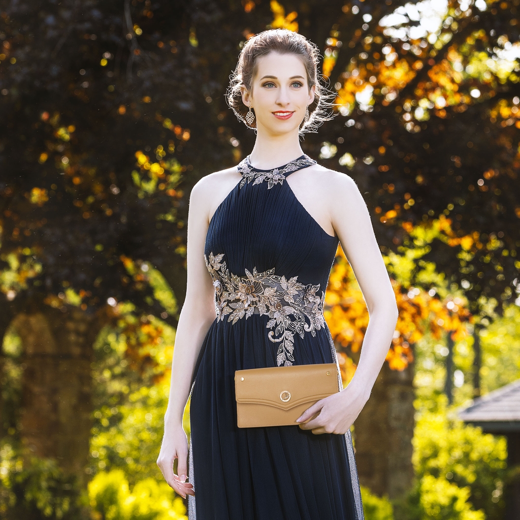 Chiếc túi này lấy cảm hứng từ tiết mục “Mộc Lan tòng quân” của Shen Yun và được chế tác từ da Ý tinh tuyển. Mặt trước có thiết kế với những đường nét vuông vức kết hợp đinh tán nhằm thể hiện tinh thần kiên cường của Mộc Lan khi ra trận. Mặt sau dùng những đường cong uyển chuyển để làm toát lên vẻ dịu dàng, nữ tính và tấm lòng hiếu thảo của nàng.