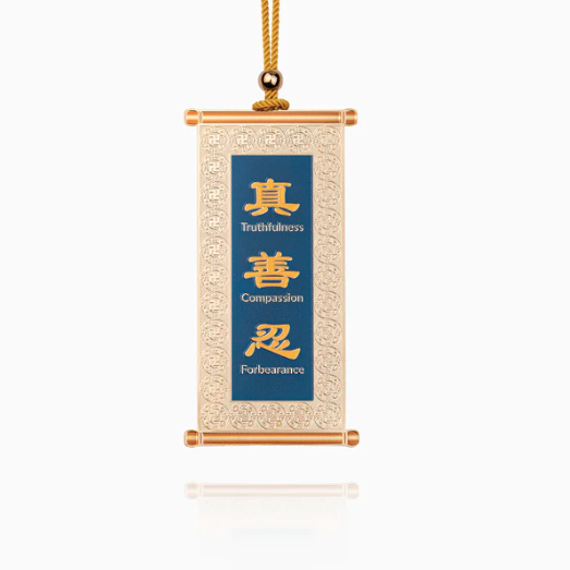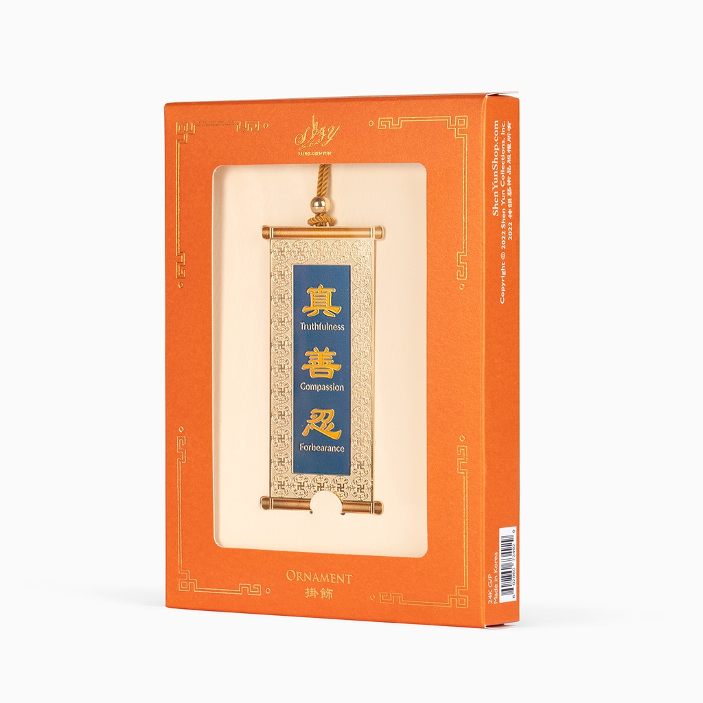 Tôn vinh những giá trị phi thường 真 (zhēn) Chân, 善 (shàn) Thiện và 忍 (rĕn) Nhẫn, đây là những đặc điểm thường được truyền tải trong các vũ điệu của Đoàn Nghệ thuật Biểu diễn Shen Yun (Thần Vận). Dây treo trang trí độc đáo này có thiết kế hình cuộn giấy trang nhã cùng ba ký tự chữ Hán đầy ý nghĩa và những đồ hình Pháp Luân được xếp liền mạch trông thật duyên dáng. Chúng tôi mong rằng hành trình mỗi ngày của bạn sẽ luôn toả sáng với những điều kỳ diệu vươn tới tận Thiên đường.